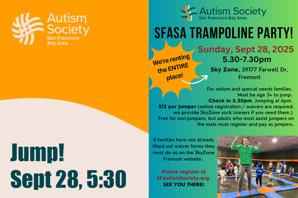 SFASA Trampoline Party, September 28 What: For autism and special needs families, we rent out SkyZone just for us! Jumpers must be at least 3 years old. This event will feature […]